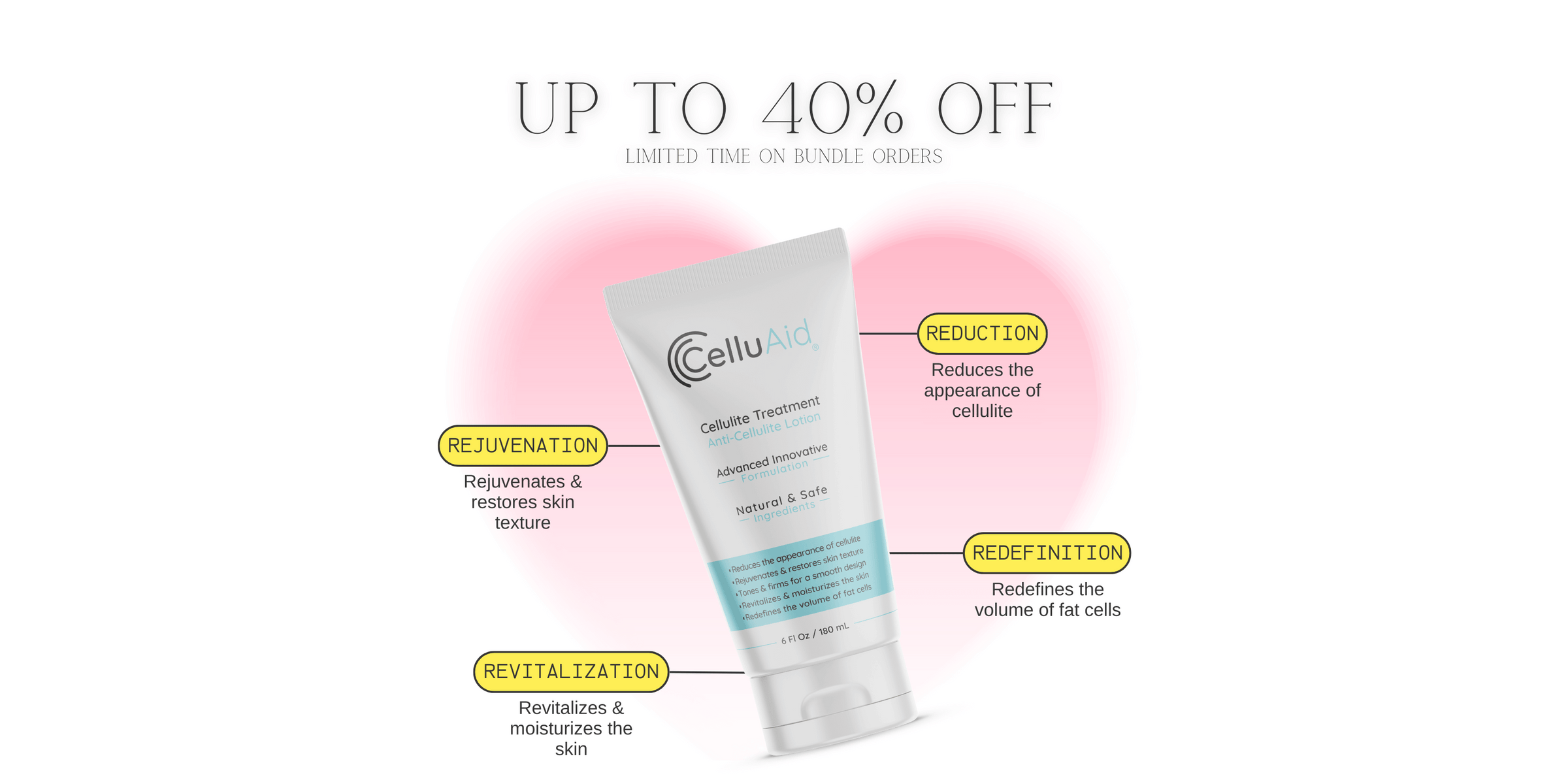 CelluAid targets fat cells within the adipose layer of the skin to visibly reduce the appearance of cellulite. This high-performance anti-cellulite cream helps “rewire” fat cell behavior, making them less likely to contribute to skin dimpling.